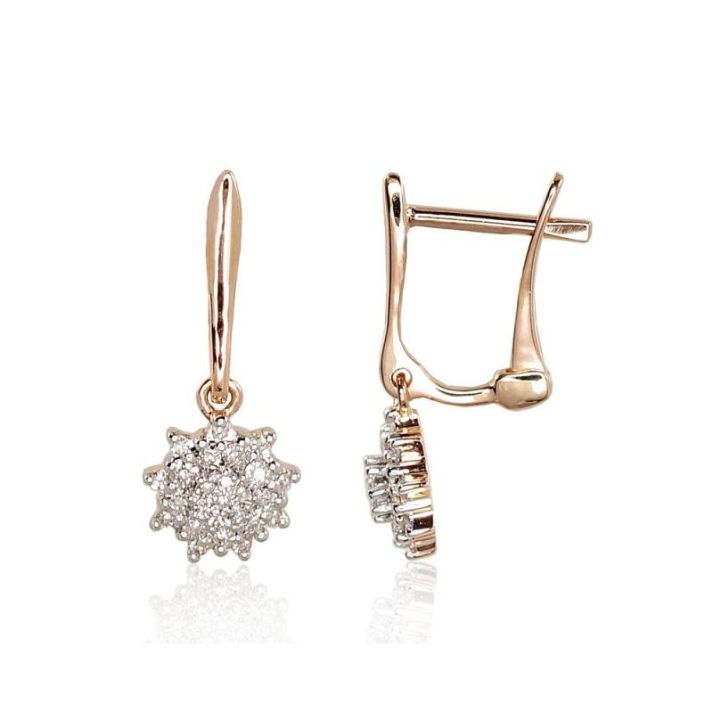 Gold earrings with 'english' lock, Red Gold 585°, Rhodium (Plating), Diamonds