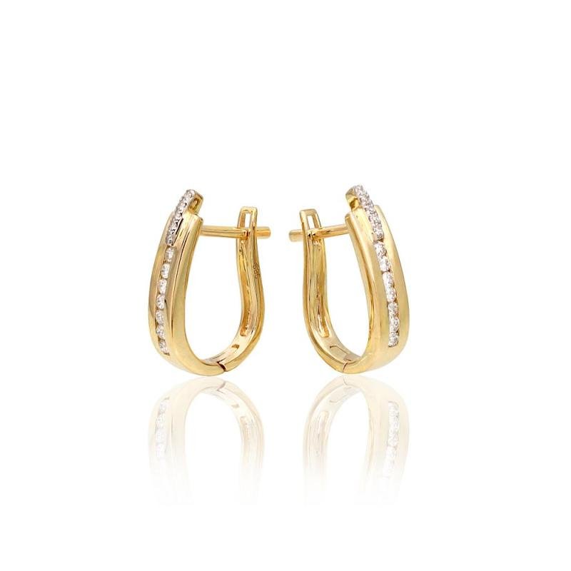 Gold earrings with 'english' lock, Yellow Gold 585°, Rhodium (Plating), Diamonds