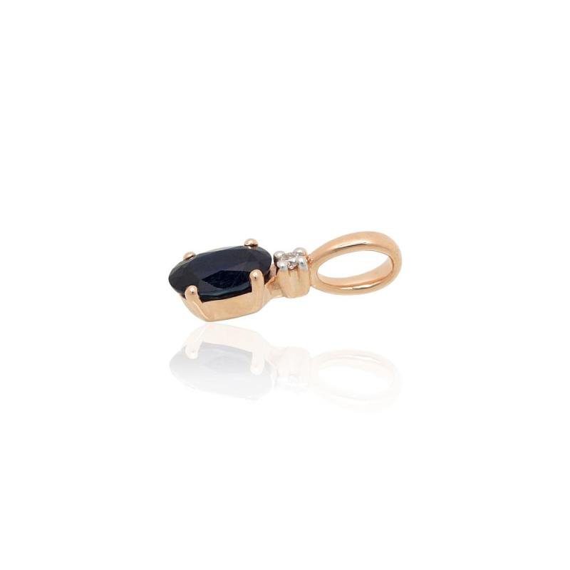 Gold pendant, Red Gold 585°, Rhodium (Plating), Diamonds, Sapphire