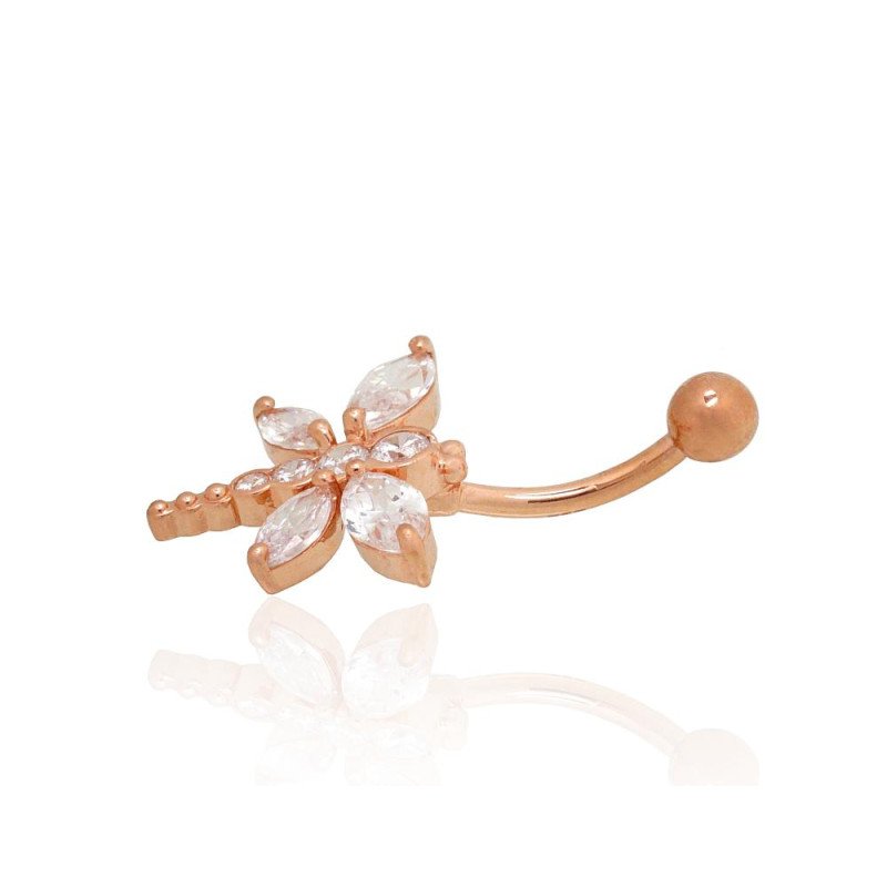 Gold piercing for navel, Red Gold 585°, Zirkons