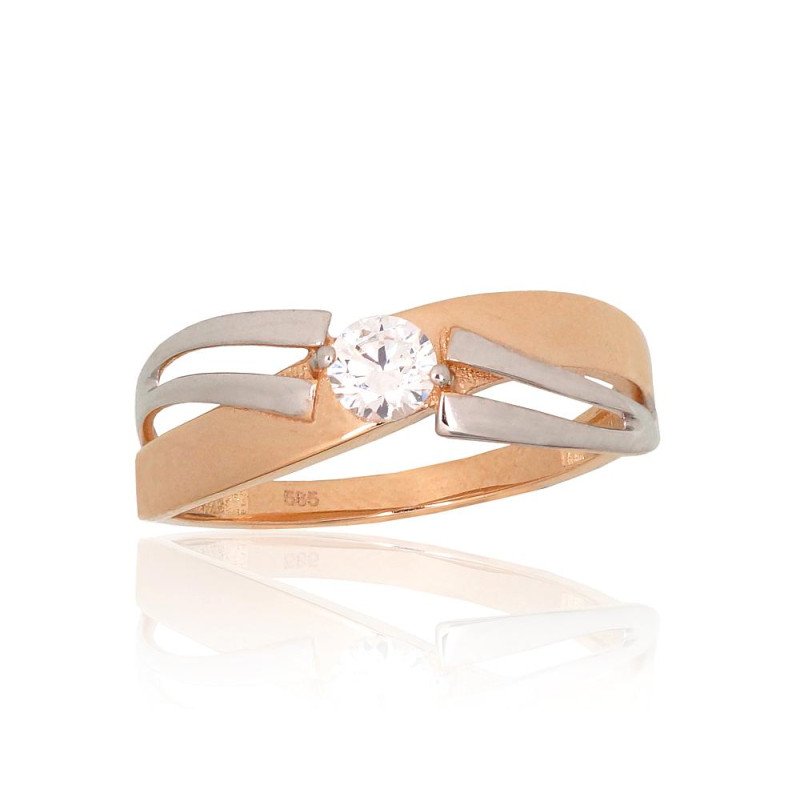Gold ring, Red Gold 585°, Rhodium (Plating), Zirkons