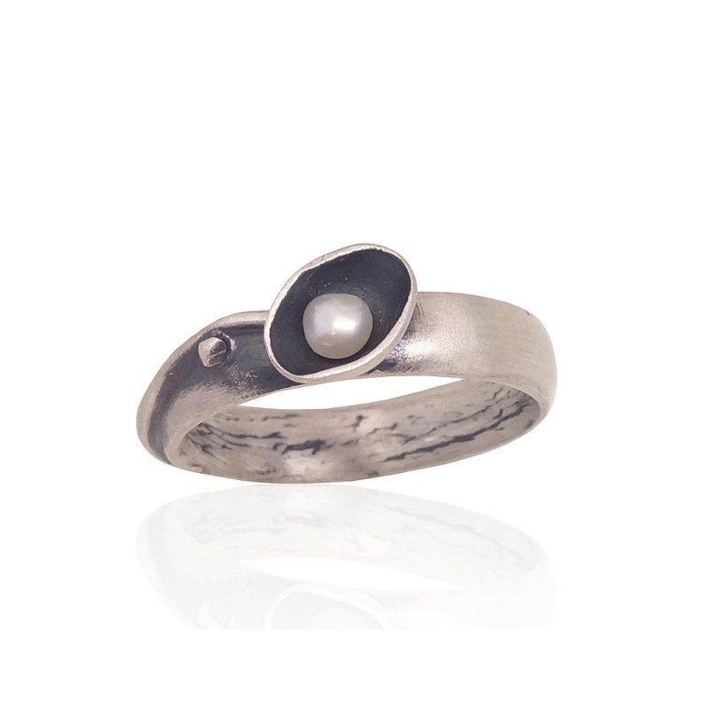 Silver ring, Silver 925°, oxide (Plating), Fresh-water Pearl