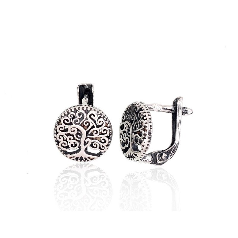 Sidabriniai auskarai ant cilindrinės spynos, Sidabras 925°, oksidas (padengti)
