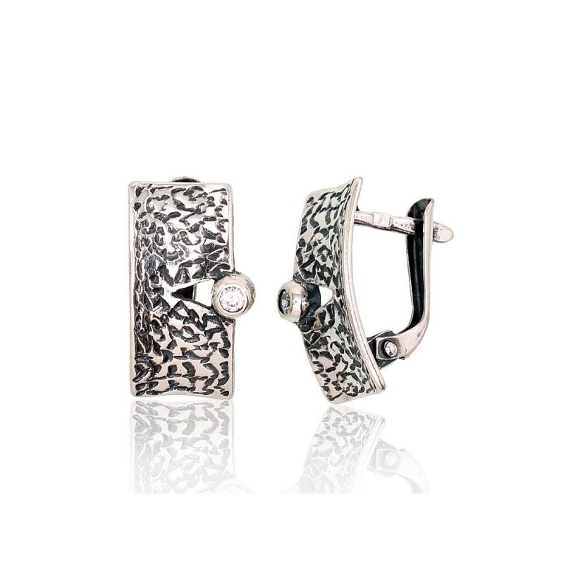 Sidabriniai auskarai ant cilindrinės spynos, Sidabras 925°, oksidas (padengti), Cirkonai
