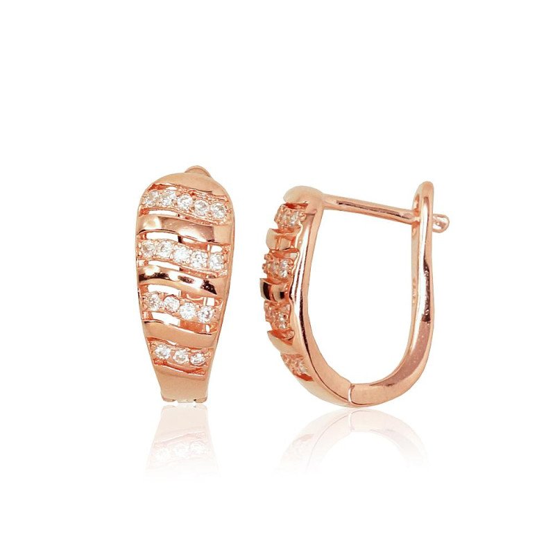 Sidabriniai auskarai ant cilindrinės spynos, Sidabras 925°, raudonas auksas (padengti), Cirkonai