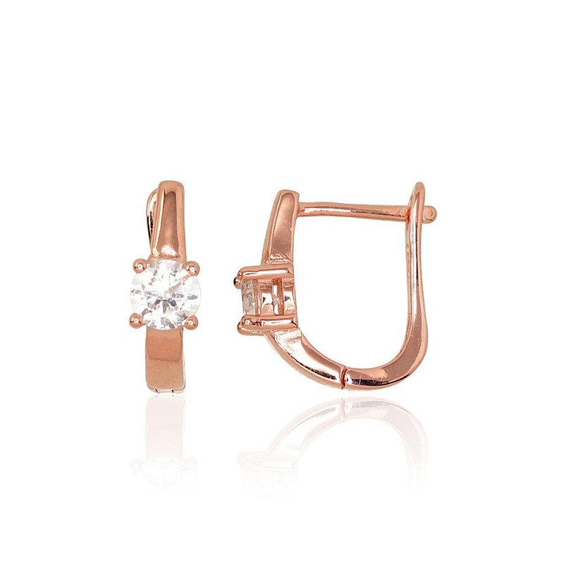 Sidabriniai auskarai ant cilindrinės spynos, Sidabras 925°, raudonas auksas (padengti), Cirkonai