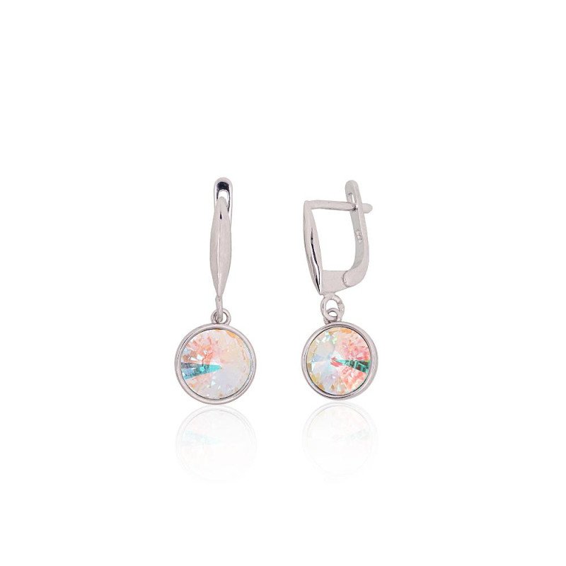 Sidabriniai auskarai ant cilindrinės spynos, Sidabras 925°, rodis (padengti), Kristalai