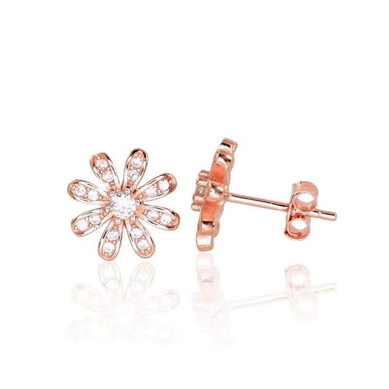 Sidabriniai auskarai –pusetai, Sidabras 925°, raudonas auksas (padengti), Cirkonai