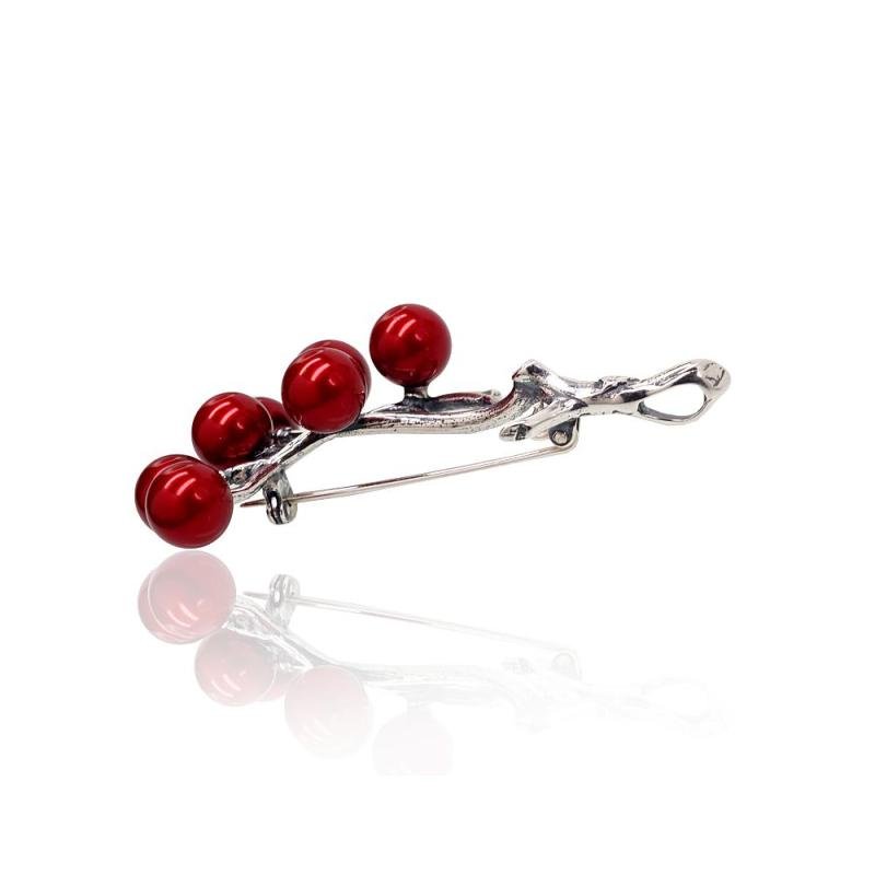 Серебряная брошь, Серебро 925°, оксид (покрытие), Жемчуг (Имитация)