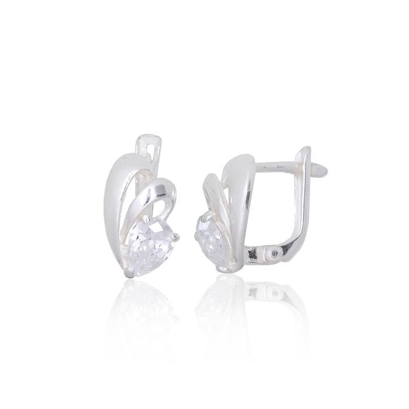 Серебряные серьги на английском замке, Серебро 925°, Цирконы