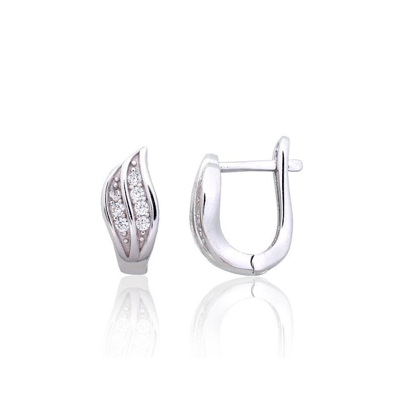 Серебряные серьги на английском замке, Серебро 925°, родий (покрытие), Цирконы