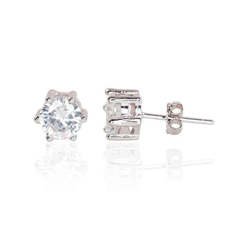 Серебряные серьги-пуссеты, Серебро 925°, родий (покрытие), Цирконы